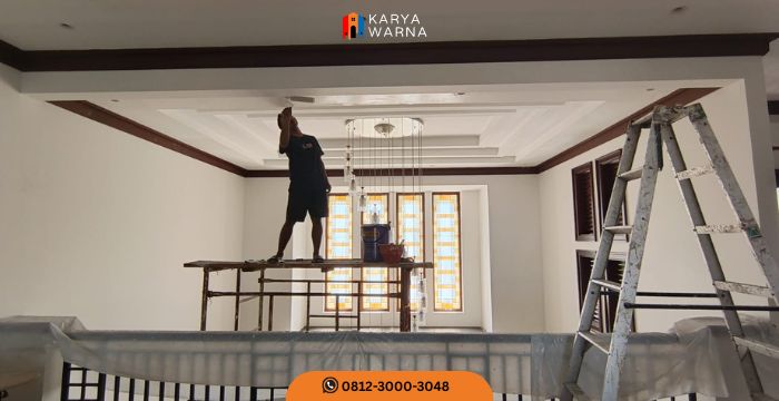 Karya Warna menggunakan cat berkualitas tinggi dari merek ternama yang memiliki daya rekat kuat, warna tahan lama, serta ramah lingkungan. Tim pengecat berpengalaman juga memastikan proses pengerjaan dilakukan dengan rapi tanpa meninggalkan noda atau garis kuas. Dengan demikian, ruangan tidak hanya tampak indah, tetapi juga memiliki finishing halus dan bersih.